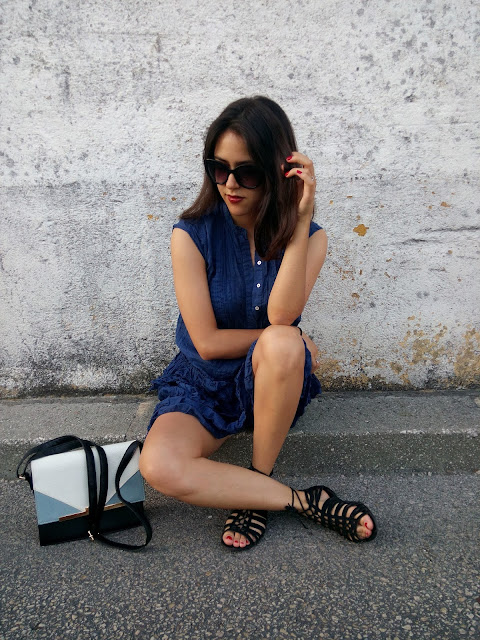 Nunca tinha usado este vestido, deram-me o ano passado já quase no fim do verão e nem tive oportunidade de o experimentar. A verdade é que gosto muito dele, tanto pela cor, como pelo corte e os folhos em baixo.